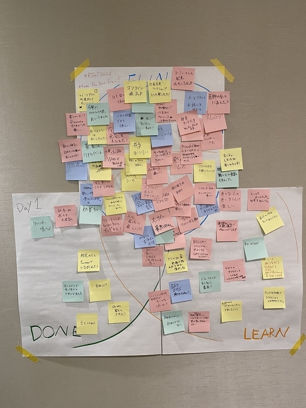 講演やオープンスペーステクノロジー以外にも、廊下で自然発生的にふりかえりがあったり、